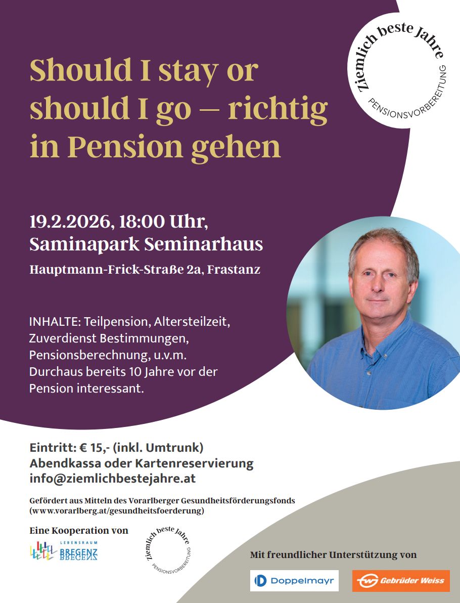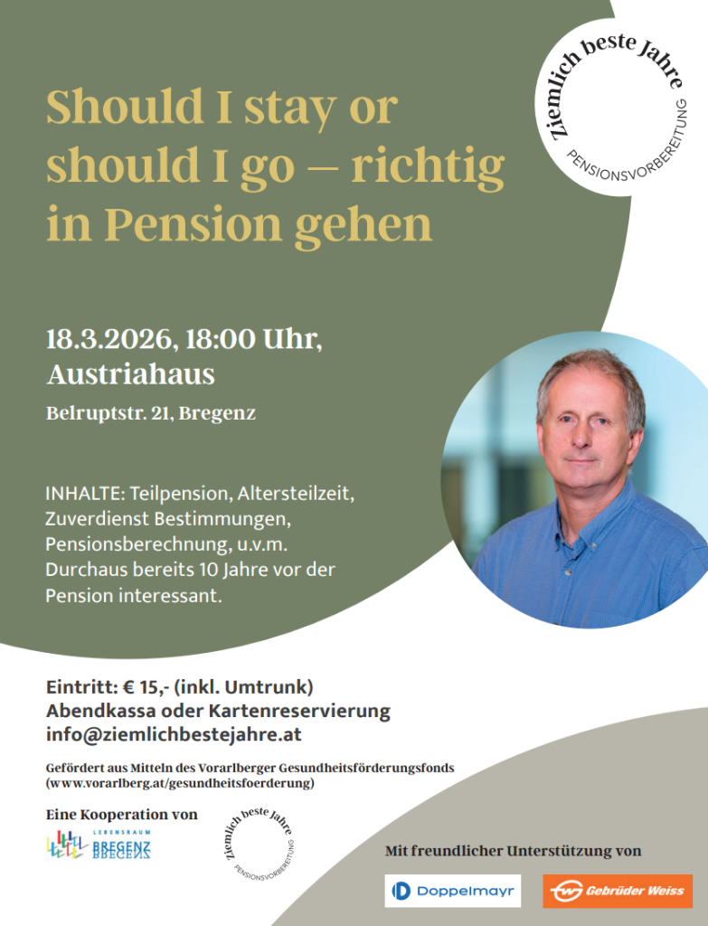 Vortrag: Should I stay or should I go – richtig in Pension gehen, Franz Beck (Februar & März 2026)